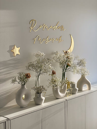 An interchangeable set of plaques, including the words Ramadan, Eid and Mubarak. Set Includes 1 x Ramadan Banner 1 x Eid Banner 1 x Mubarak Bann...